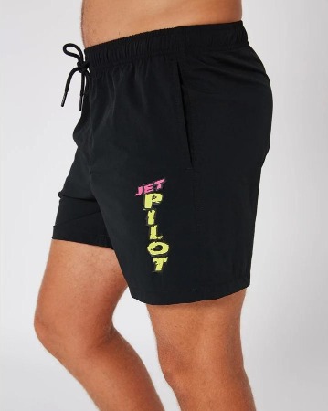 Dive into the nostalgia of the '80s while pushing your beach adventures to the limit with the Jetpilot Raver Beach Men's Boardshorts in Black.